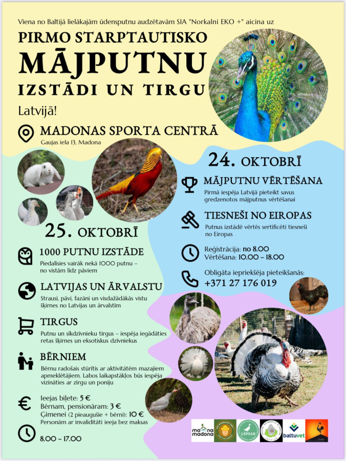 25. oktobrī - starptautiska "Mājputnu izstāde" Madonā