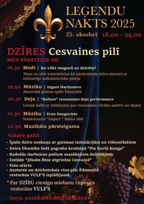 Ikgadējā Leģendu nakts notikumā 25. oktobrī vairāk nekā 50 pilis un muižas vērs durvis un gaidīs ciemos apmeklētājus uz koncertiem, izstādēm, vakariņām un dejām, izrādēm un ekskursijām.