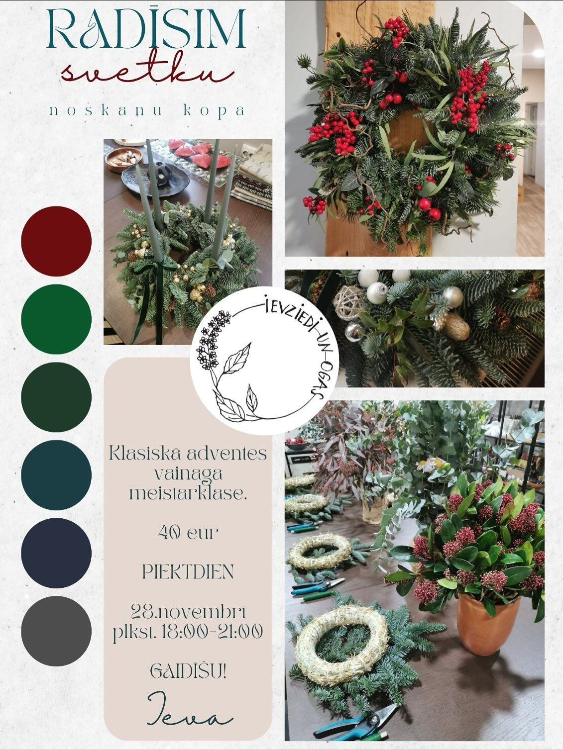 Jāsāk gatavoties skaistajam Ziemassvētku laikam, tādēļ veikaliņā "Ievziedi un ogas" piedāvā divas meistarklases.