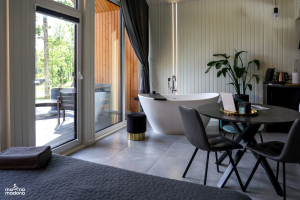 Two holiday homes give the possibility to hide yourself from the everyday rush by taking relaxing bath or steamy sauna with a direct view to a forest.