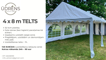 4 × 8 m tent: EUR 140 per 24 h. EUR 90 for every next 24 h (assembly included in the price).