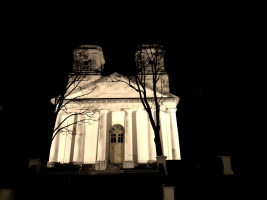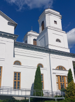 Baznīca ir klasicisma stila, ar diviem masīviem torņiem, vairākām ieejām ar granīta kāpnēm. Galveno ieeju rotā portiks ar sešām baltām kolonnām. Baznīcas altāri ir veidoti krāsaina Itālijas marmora apdarē, ar lielām svētbildēm. Centrā 17. gs. spāņu mākslinieka Muriljo gleznas “Bezgrēcīgās Jaunavas Marijas parādība” kopija. Labās puses altārī – Golgātas motīvs (Kristus ciešanu aina), kreisās puses altārī – grāfa M. Borha svētā aizbildņa erceņģeļa Miķeļa atveids (Rafaela gleznas kopija).