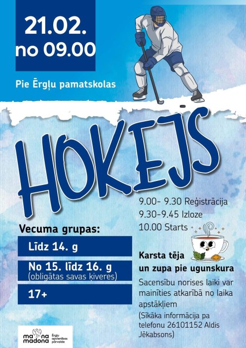 Laiks satikties uz ledus un izbaudīt īstu ziemas sporta garu! Aicināti gan jaunie hokejisti, gan pieaugušie – būs azarts, kustība un silta atmosfēra.