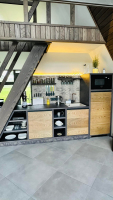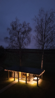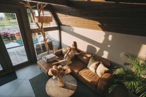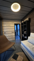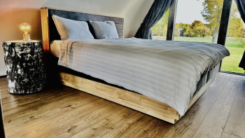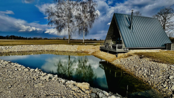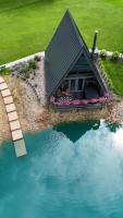 Vieta, kur būt uz viena viļņa ar dabu. A-Frame tipa namiņš, kur abas puses ir no stikla un vienmēr ir gaisamas piepildītas. Plaša terase ar skatu uz Teiču rezervātu.