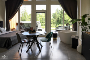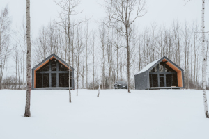 Two holiday homes give the possibility to hide yourself from the everyday rush by taking relaxing bath or steamy sauna with a direct view to a forest.