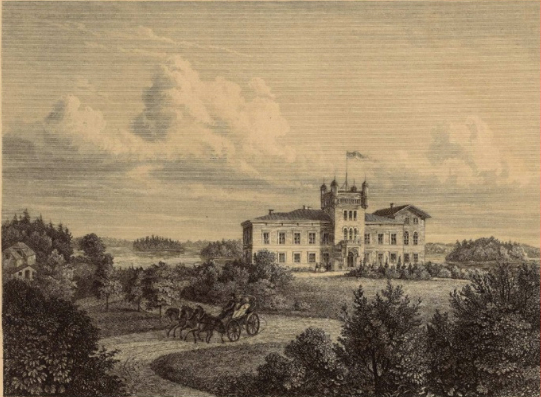 Jumurda manor, 1866. Gravure by W. S. Stavenhagen.