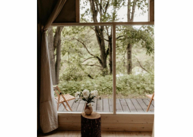 * Namiņā nav elektrības, bet ir cita veida apgaismojums un iespēja uzlādēt viedierīces.