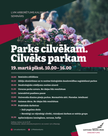 19. martā LVM arborētumā Kalsnavā notiks seminārs "Parks cilvēkam. Cilvēks parkam.”