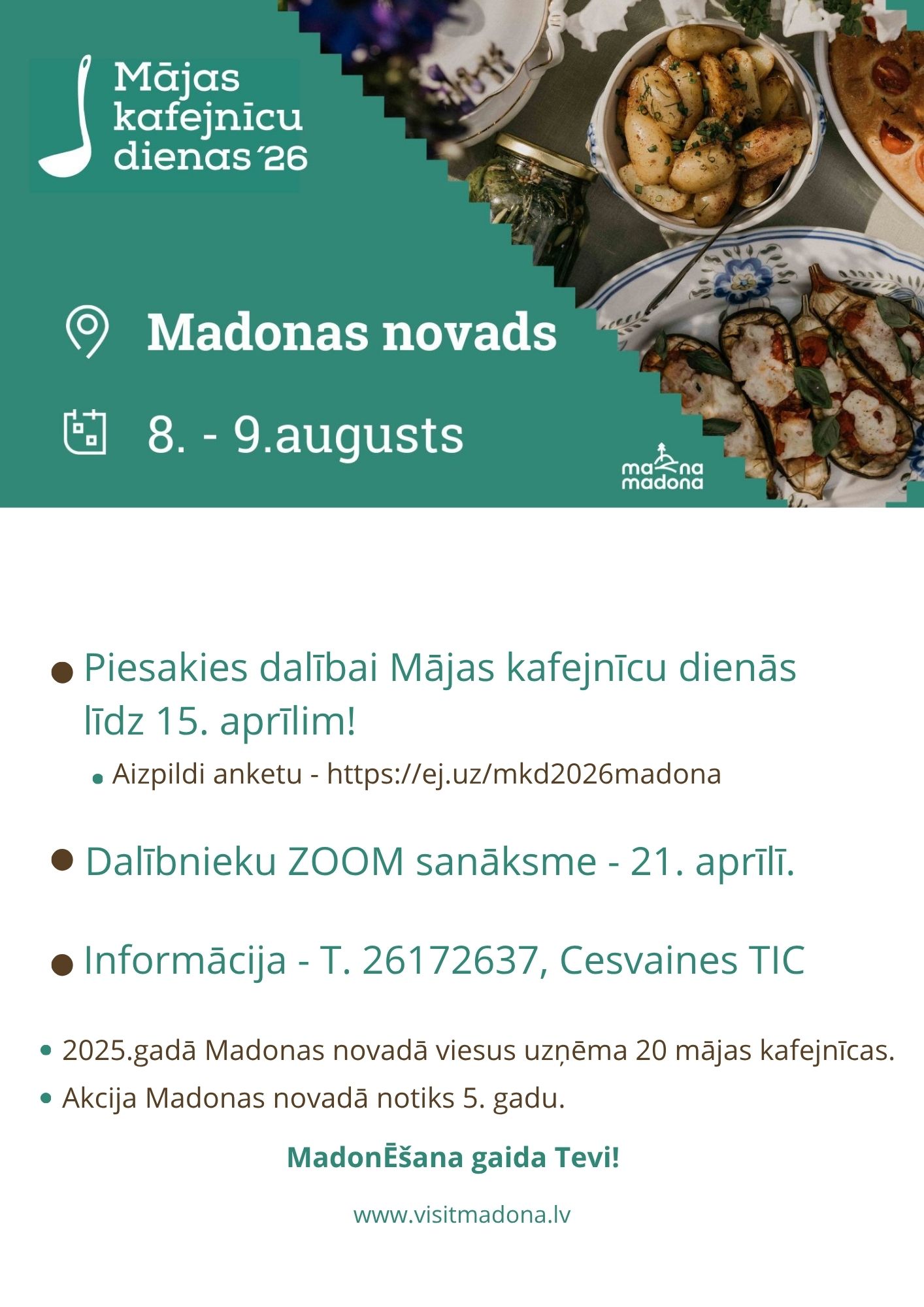 Aicinām pieteikt dalību Mājas kafejnīcu dienās MADONAS NOVADĀ - MadonĒšana 2026!