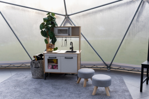 * Divi savstarpēji savienoti kupoli ar labierīcībām un virtuves zonu.
