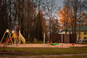 Внимание! Машину удобнее всего припарковать на стоянке больницы Эргли ул. Парка 7. Слева от больницы находятся руины замка, беседка, скульптуры «Ērgļu Sargsuņi» и вантовый мост, а с правой стороны - детская игровая площадка, тренажеры и стоячая скамья.