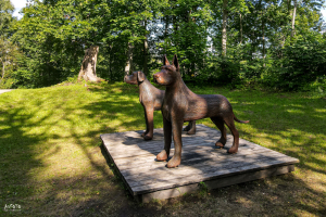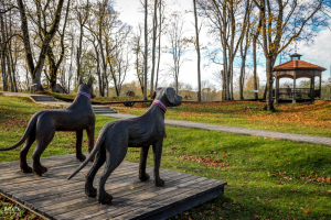 * На месте средневекового замка установлены скульптуры «Сторожевые собаки Эргли» (художник Иварс Майлитис), которые охраняют сокровища семьи Тизенхаузен, бывших владельцев замка Эргли. Легенда гласит, что сокровища все еще находятся в подземелье замка, где их охраняют две кованые из железа собаки. Территория средневекового замка Эргли исторически была центральным местом Эргли. Богатая семья Тизенхаузен правила окружающими землями почти два столетия.